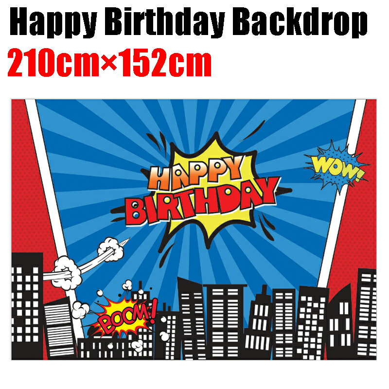最新発見 アメコミデザイン超ビッグサイズバックドロップ 210cm 152cm バースデイ パーティーグッズ Happy Birthday 誕生日 ネコポスは送料無料 背景布 Qdtek Vn